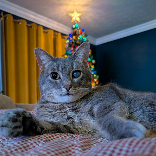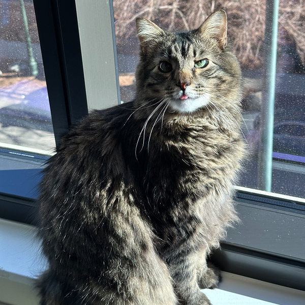From his post atop the cat castle or window ledge, Meatloaf keeps a watchful eye on all things suspicious—like squirrels, mail carriers, and subpar bird toy throws. His favorite toy, Burt the Birdie, gets a proper chase only if thrown with skill. Otherwise, expect a look of pure judgment. He excels in treat puzzle operations and has a sixth sense for when dinner is exactly two hours away. Known for his dramatic bed leaps and whisper-meows, Meatloaf commands attention with a quiet “ahhhh” that means business. Fierce, cuddly, and discerning—he is the security system.