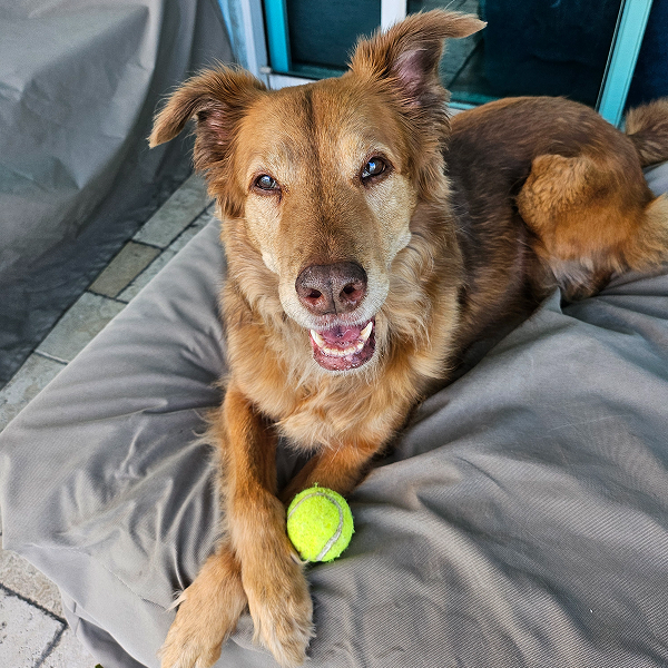 Vixey is the undisputed Chief Executive Diva of her home. Her day-to-day passions include mastering new tricks, passionately barking at jet skis from her balcony perch, casual games of fetch, and binge-watching TV from her designated couch throne. Known for her diva energy, Vixey knows her worth and has strong opinions about who is allowed in her balcony view and she guards her TV spot like it’s a corner office. Rescued from a tough past, she has risen to luxury and now lives the pampered life she deserves—complete with snuggles, treats, and total control over the remote.